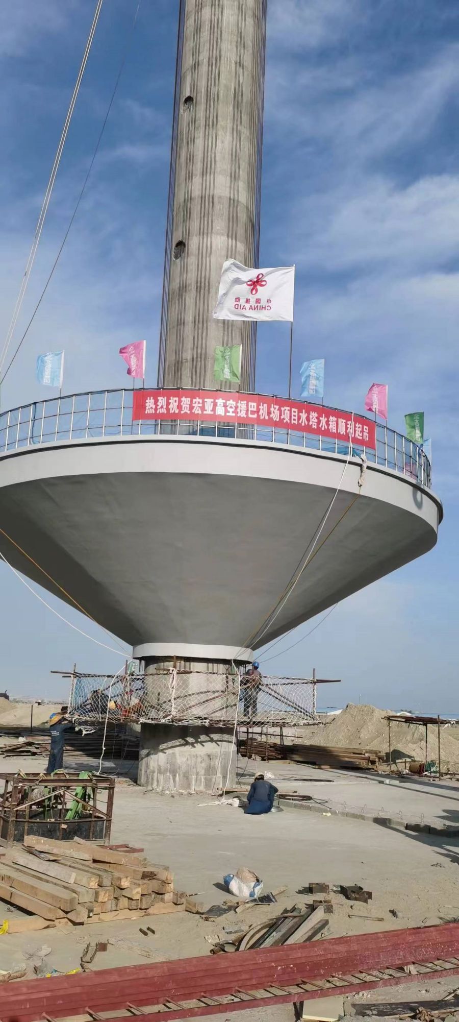 巴基斯坦瓜达尔机场的建设对于当地的交通和经济发展具有重要意义,而水塔作为机场正常运行的关键基础设施之一,其建设至关重要。江苏宏亚高空工程有限公司凭借自身在高空工程领域的专业技术和丰富经验,毅然参与到这一项目中来。