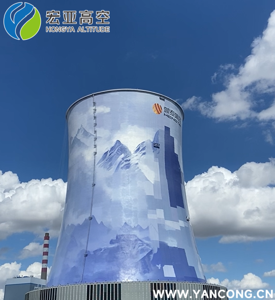 这项工程的成功,不仅展现了宏亚高空在工业建筑美化领域的专业实力 —— 从基底处理到面层彩绘,从材料甄选到工艺把控,全程体现 “匠心筑造” 理念;更让蒙泰集团北源热电的间冷塔完成了 “功能载体” 到 “艺术载体” 的升级,成为工业与艺术融合的典范,为行业内同类项目提供了极具价值的实践参考。