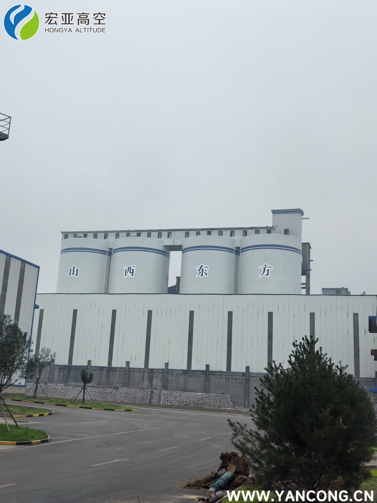 涂装环节中,团队严格遵循工艺标准,先涂刷一道环氧封闭底漆,增强漆面附着力与防腐性能;再连续涂刷两道丙烯酸聚氨酯面漆,不仅赋予煤仓持久的耐候性,更让筒壁呈现出均匀饱满的色泽。最引人注目的是,施工人员严格依照设计效果图,在仓壁精准涂写“山、西、东、方”四个大字,字体遒劲有力、醒目大气,既彰显了企业标识,又为工业建筑注入了独特的品牌内涵。